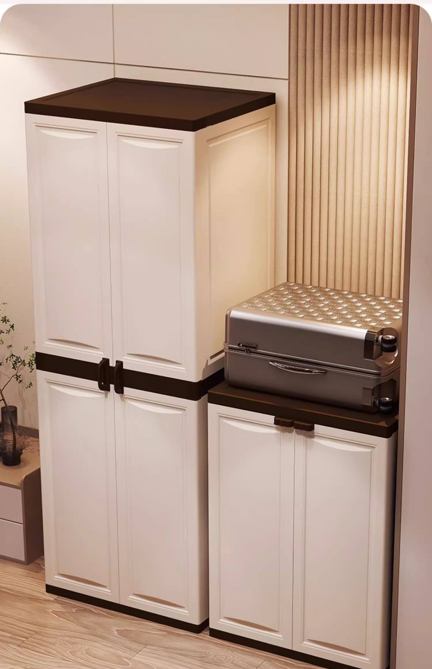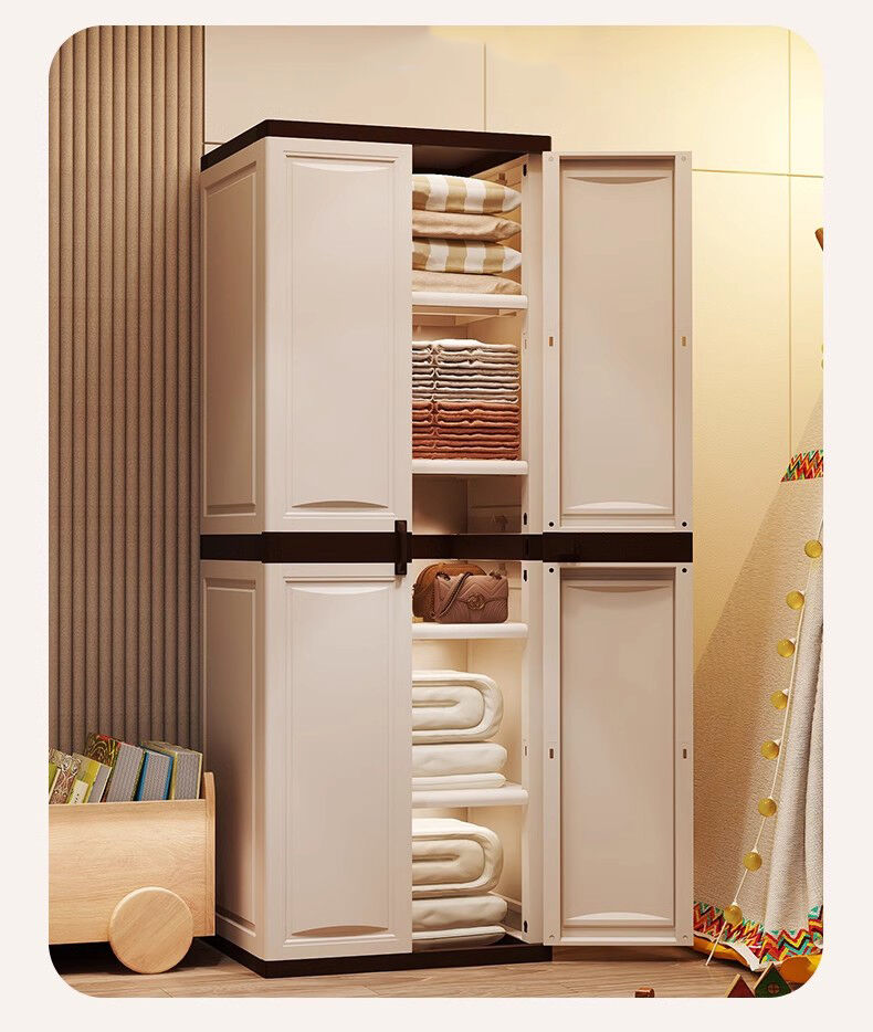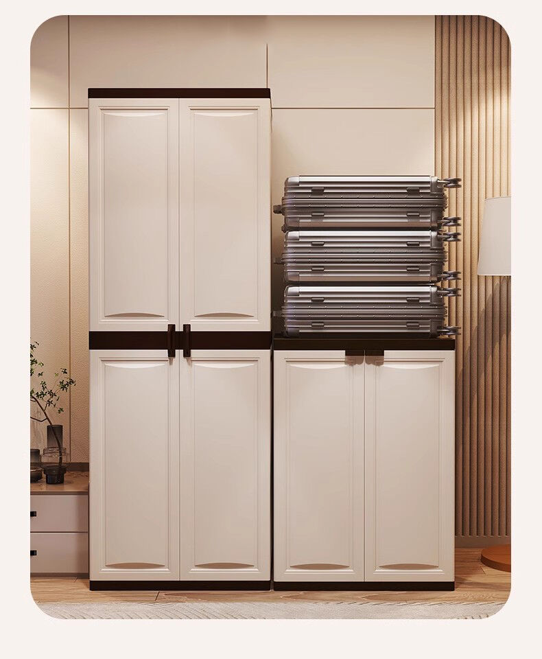 Your Tailored Storage Solution: A Versatile PP Cabinet in cream white, Offering Flexible 1/2 Tier Designs and Adjustable Shelving
