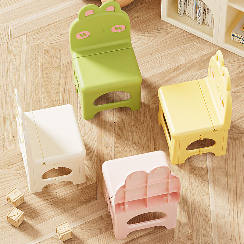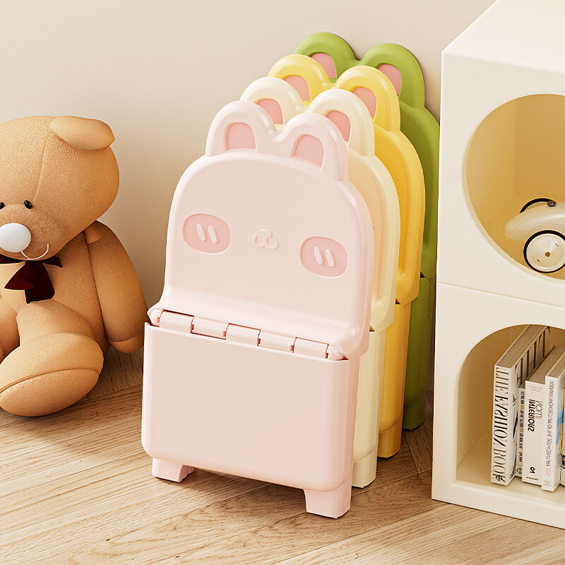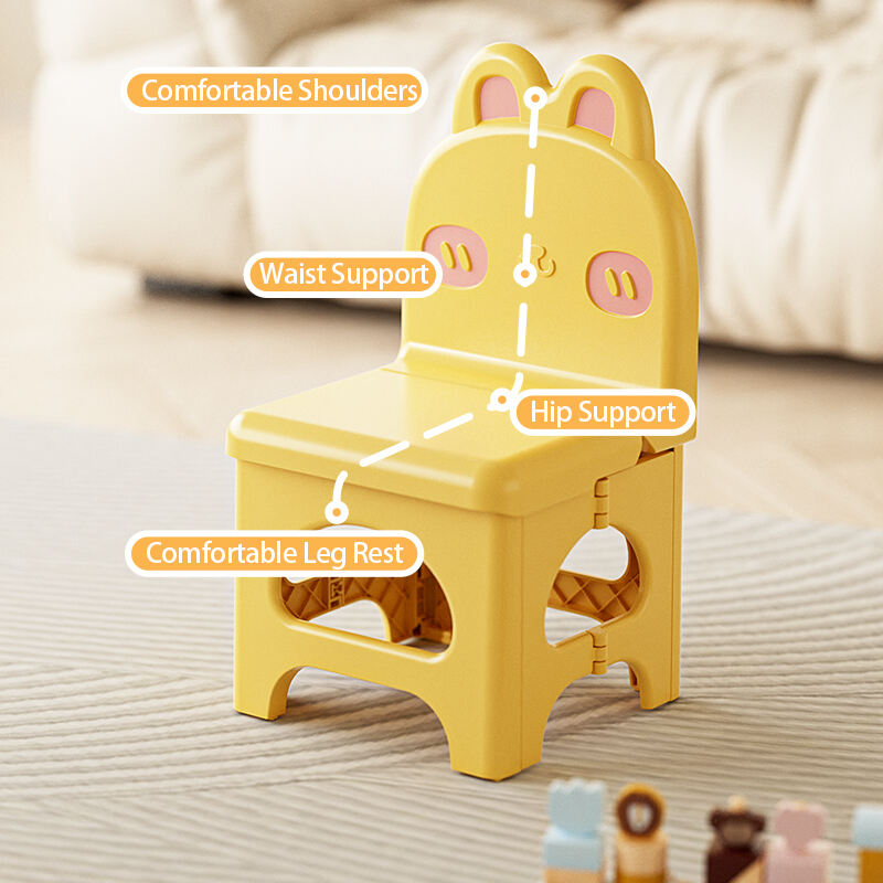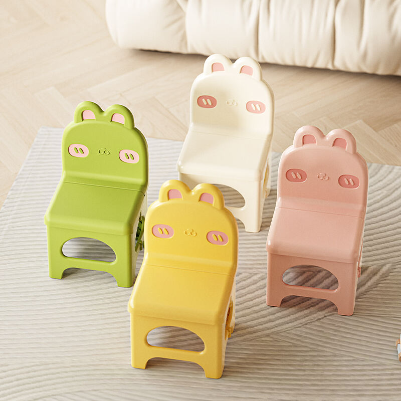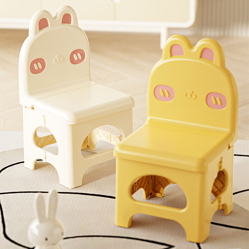 This plastic folding backrest chair is specially designed for children, featuring a coloful cartoon rabbit that will surely capture their heart. The foldable design makes it easy to carry and save space
