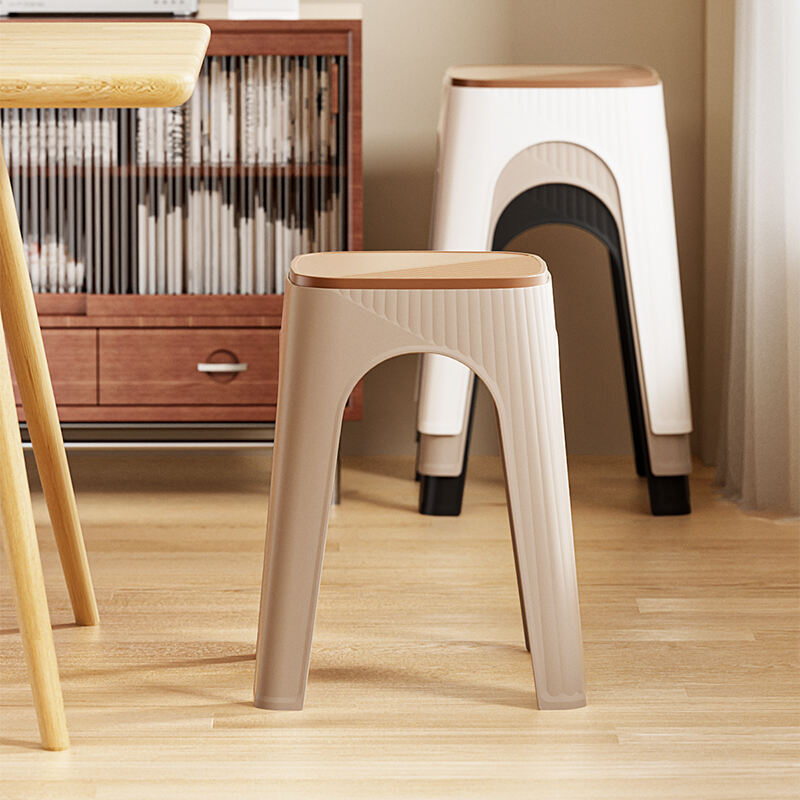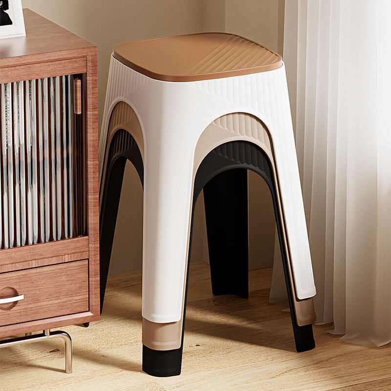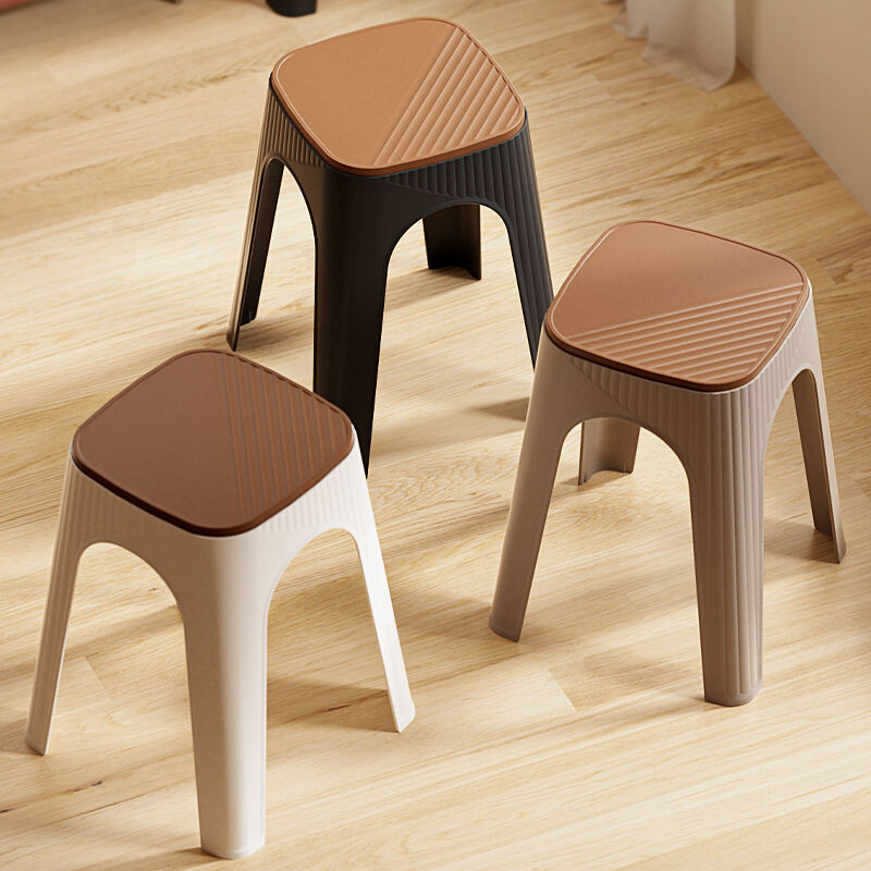 Ce tabouret carré empilable mesure 37*37*48 cm. Son design moderne est idéal pour économiser de l'espace, et il est disponible en trois couleurs polyvalentes : Blanc, Noir et Kaki